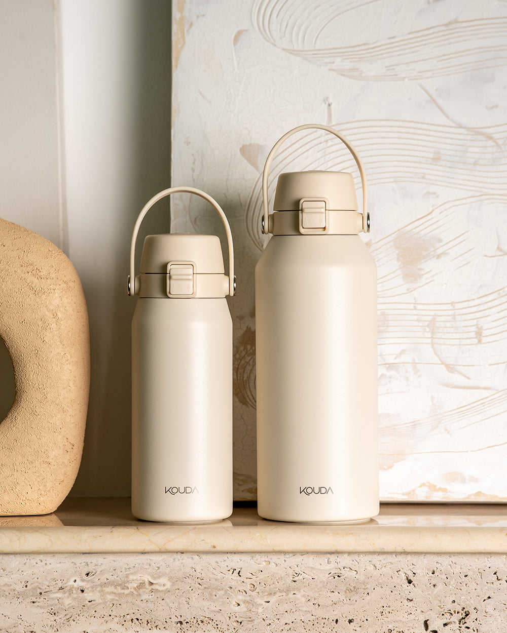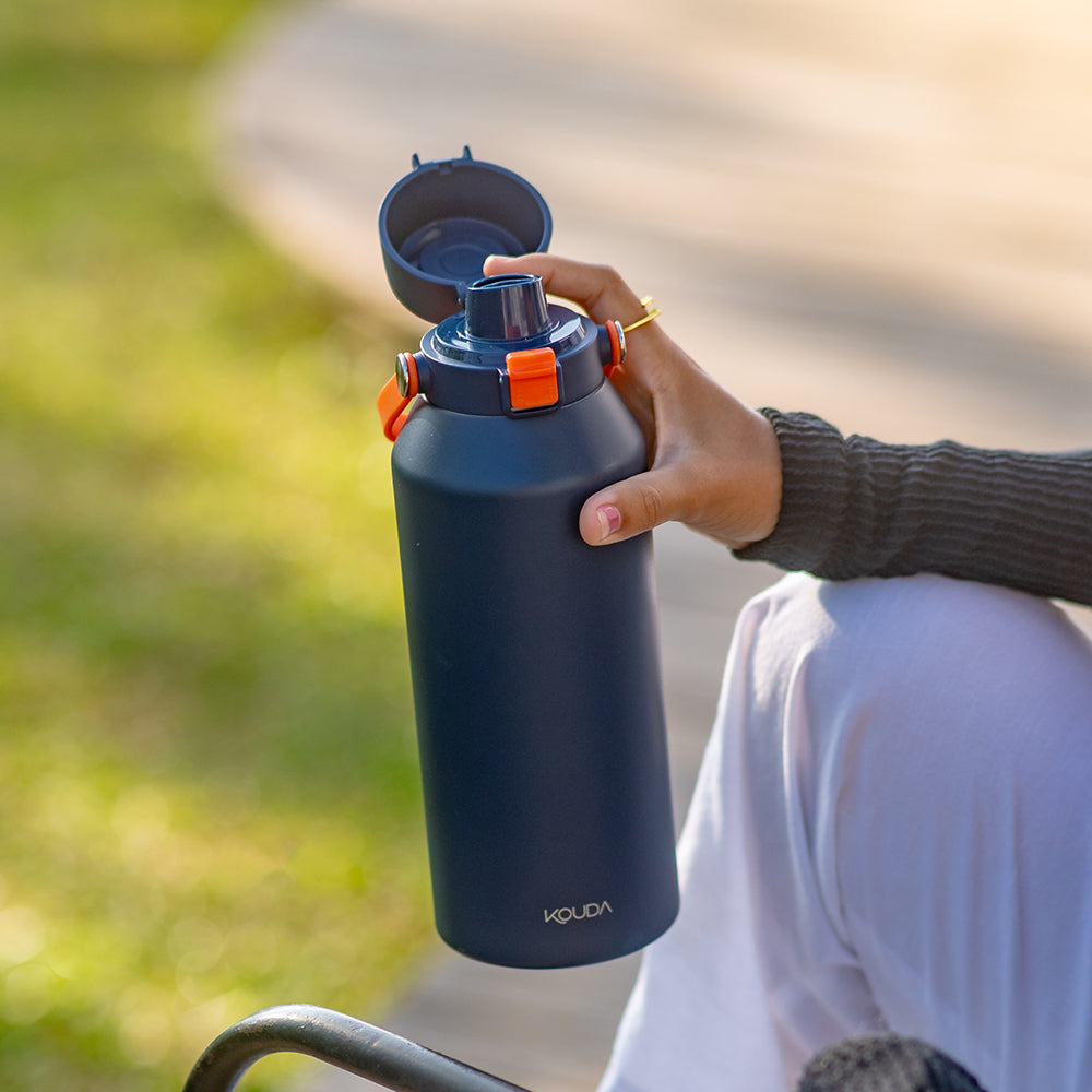 Prefira sempre adicionar o gelo com cuidado e, se possível, use pedras menores ou em formatos que encaixem facilmente na boca da garrafa. Dessa forma, você garante refrescância e mantém sua Kouda em ótimo estado!