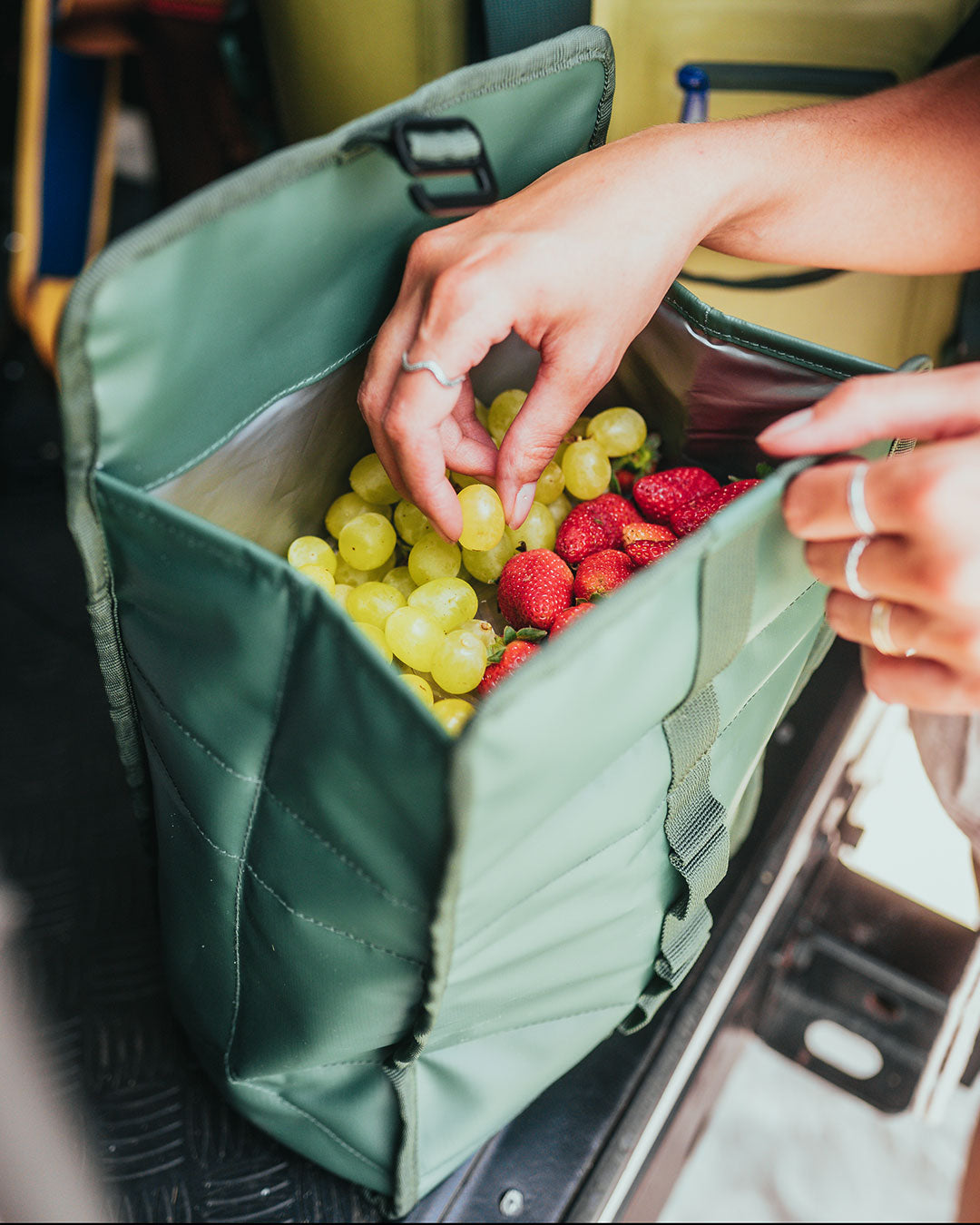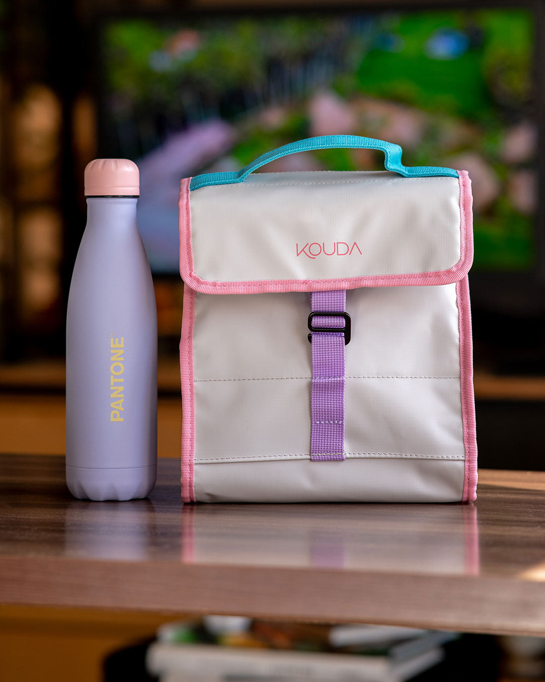 Compacta e versátil: Escolha o tamanho da sua Lunch Bag deslizando o gancho de fechamento para uma das alças.