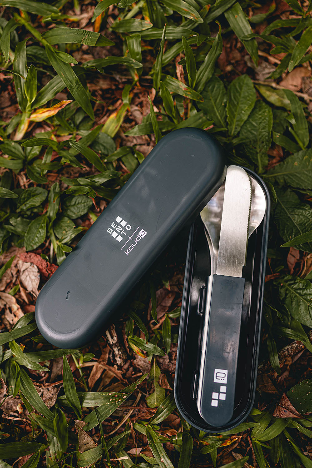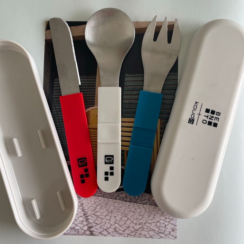 Estojo de talheres em aço inox que se encaixam, super compactos, resistentes e desenhados exclusivamente para levar conforto e praticidade à sua refeição com todo o estilo. Eles nunca te deixarão na mão!