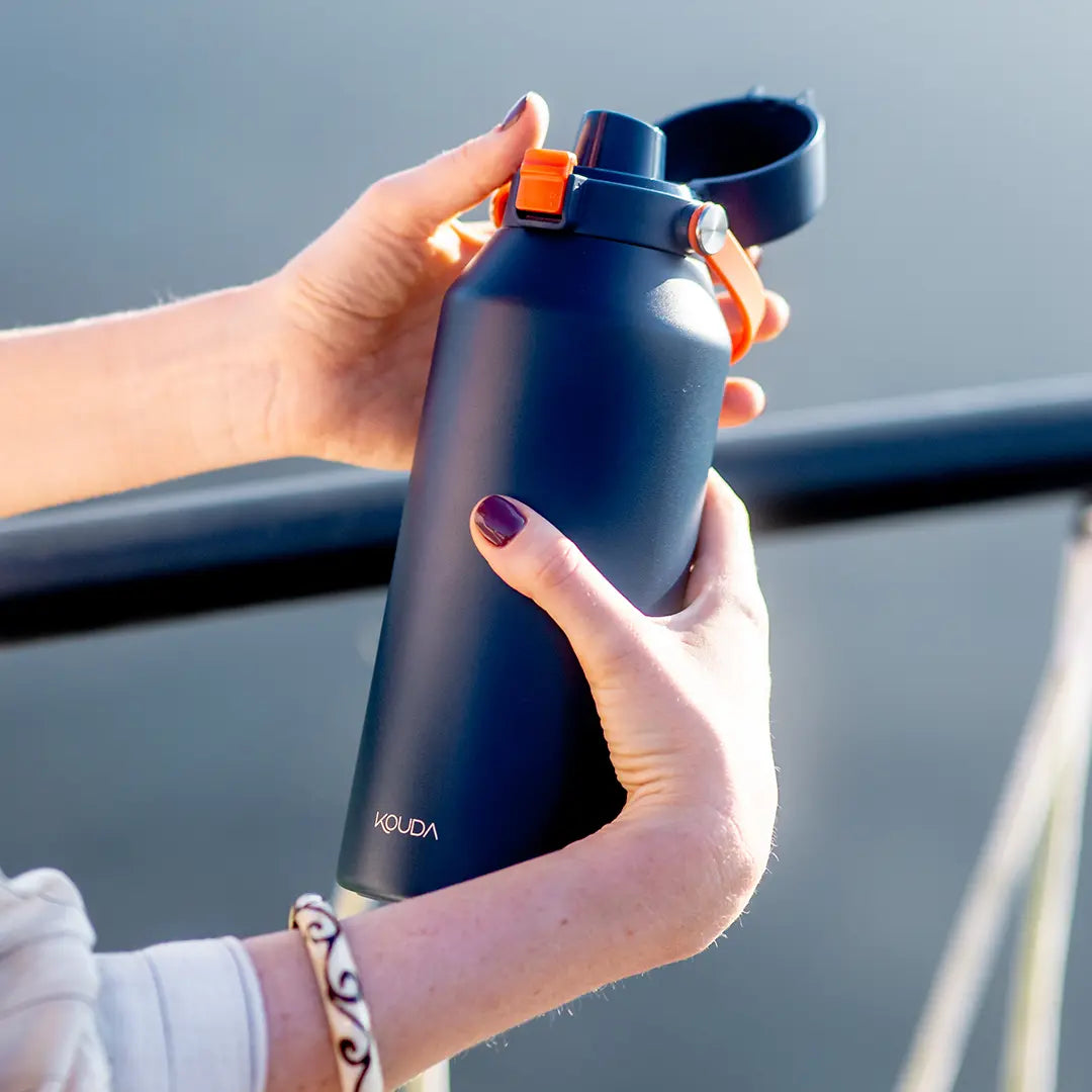Produzida com dupla parede de AÇO INOXIDÁVEL SAE 304 18/8. Diferencia-se de outros tipos de aço inox pela presença conjunta de Cromo (Cr 18%) e Níquel (Ni 8%) em sua composição, o que o torna muito mais resistente à oxidação e corrosão, Livre de BPA também proporciona maior segurança à saúde e ao meio ambiente. Tampa hermética (não vaza) de rosca em polipropileno com botão para abrir/fechar e trava de segurança. Bico duplo DualSip - use o canudo integrado ou incline-se para beber. Alça móvel em silicone para mais conforto e praticidade na hora de carregar. Canudo em aço inoxidável. Anti-abrasão! A pintura em POWDER COATING garante uma textura externa mais resistente à arranhões, mantendo-a como nova por muito mais tempo. (exceto cor prata – sem pintura externa). Base antiderrapante - Fundo com silicone para mais segurança e conforto. Não recomendamos o uso do canudo para bebidas quentes. Líquidos quentes sob pressão podem subir rapidamente pelo canudo e atingir a boca com força, aumentando o risco de queimaduras.